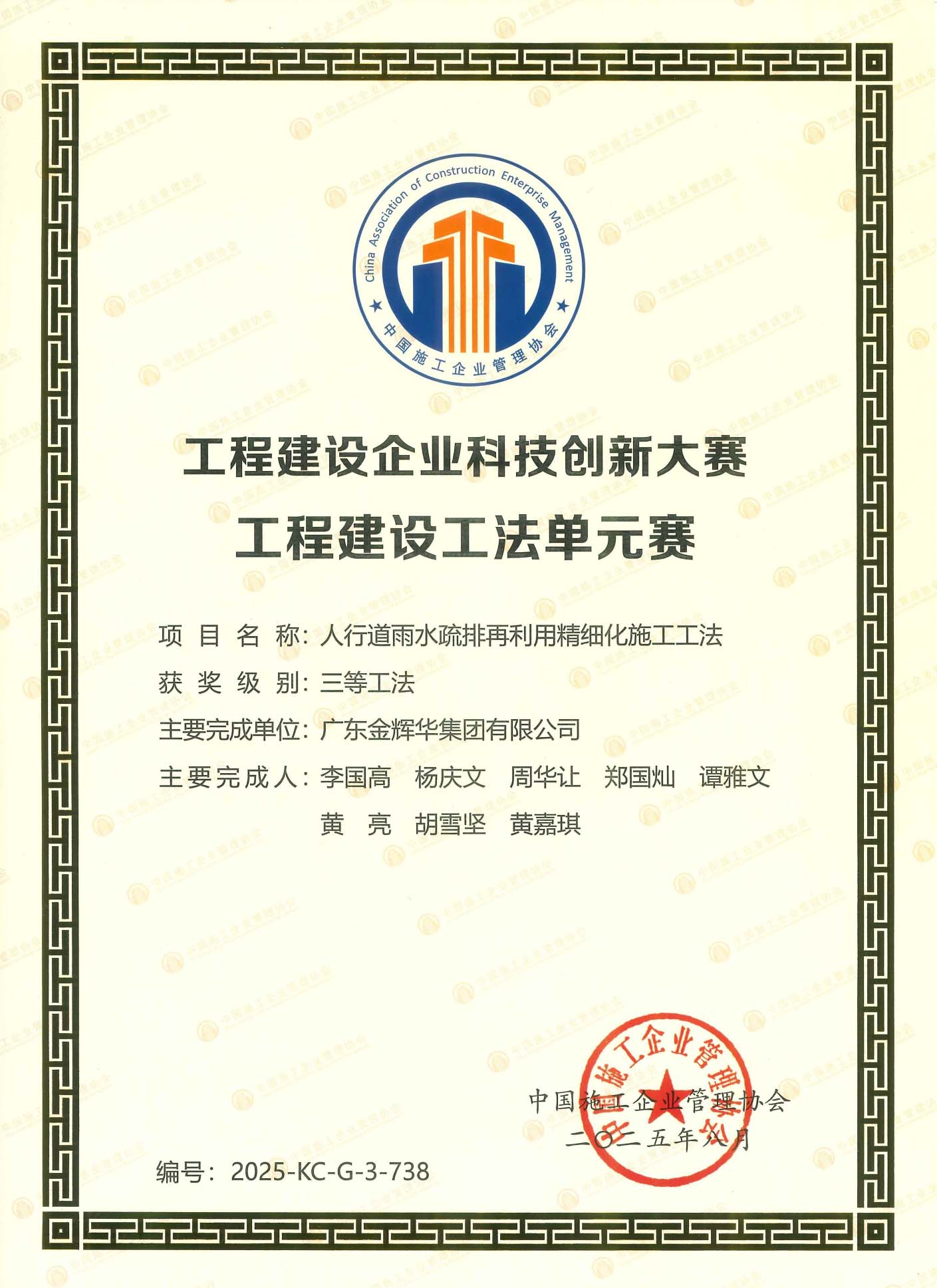 其中,工程建造微創新技術大賽國家微創新獎三等成果1項;