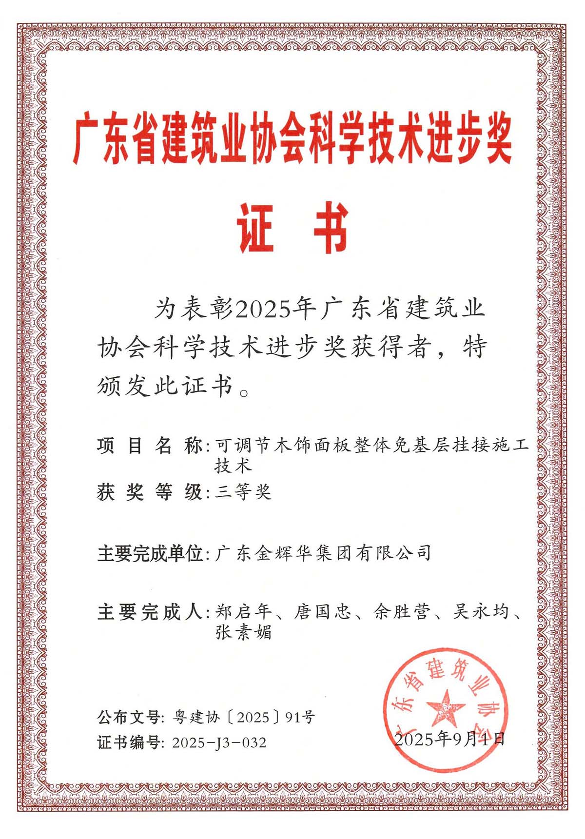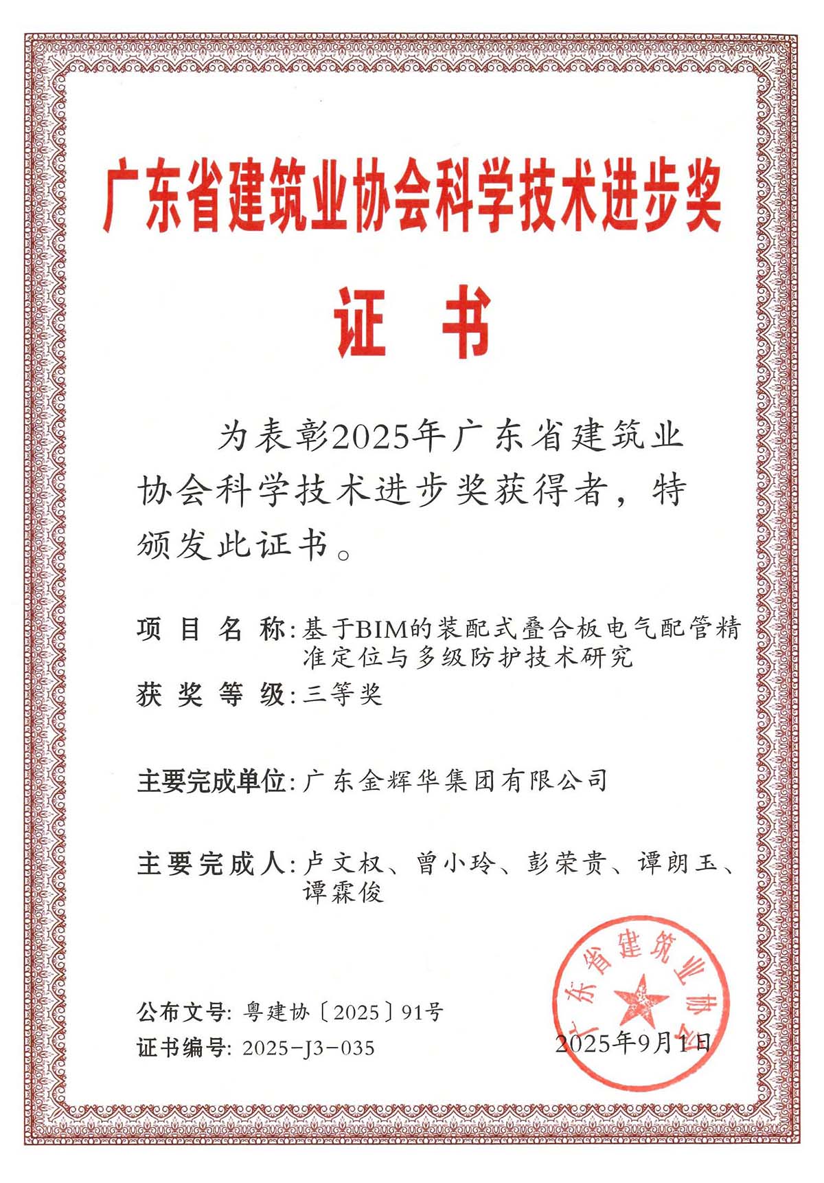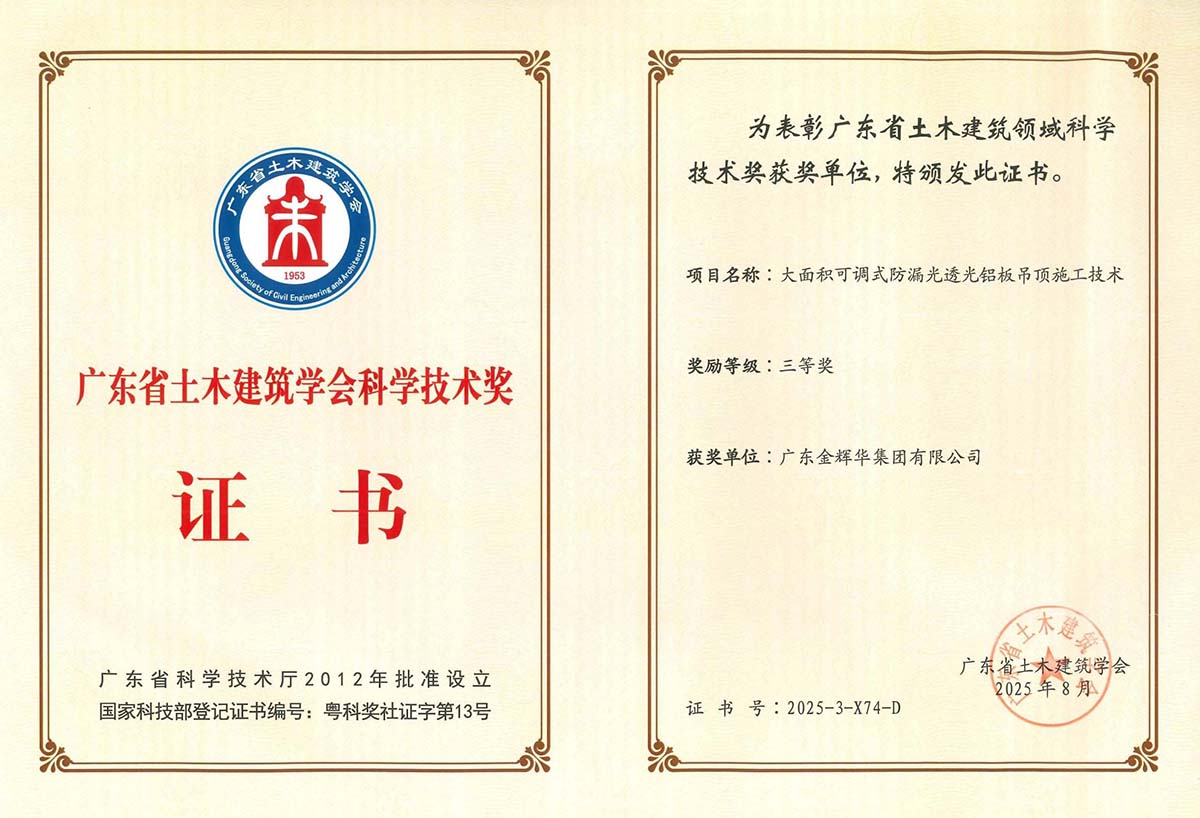 此次多項成果榮獲行業重要獎項,是對我們過去科技創新工作的肯定,更是激勵我們不斷前行的動力。未來,金輝華集團將繼續秉承科技引領、創新驅動的理念,緊盯行業前沿技術,不斷加強創新能力。我們將致力于打造更多具有核心競爭力的科技成果,為建筑行業的發展注入更多的金輝華智慧。
